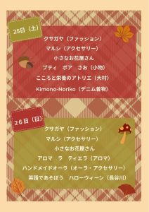10月25日(土)26日(日)9:00~15:00(イベント開催時間)